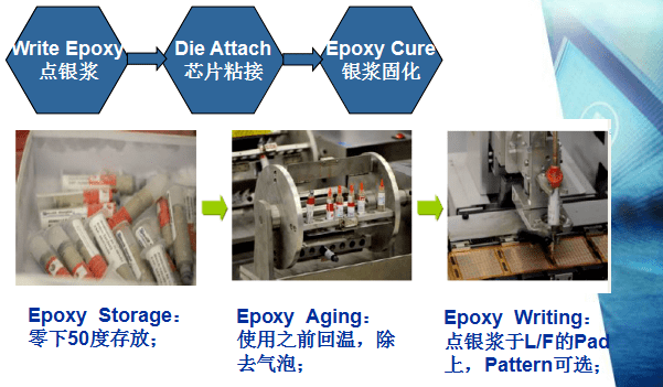 成分為環(huán)氧樹脂填充金屬粉末(Ag);有三個作用:將Die固定在Die Pad上; 散熱作用,導電作用;