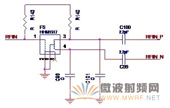 其實(shí)大家也一定想到了,收發(fā)器接收信號(hào)和收發(fā)器發(fā)送信號(hào)差不多就是互為逆過程,因此電路的結(jié)構(gòu)也差不多是相反的。沒錯(cuò),看了下面的實(shí)際電路圖就知道了。 先來介紹使用平衡器的方案。在某實(shí)際案例中,采用了如圖2-8所示的平衡器電路。單端信號(hào)RF_IN經(jīng)過平衡器F5后得到差分的射頻信號(hào)RFIN_P和RFIN_N。